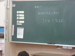 新しいクラスで「おともだちをふやそう・・・」とサインの練習を行い、お互いにサインを交換していました。楽しそうでした。