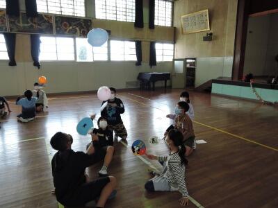 風船パタパタゲームやドッジボールなどをして、楽しみました♪