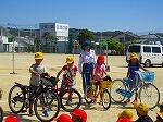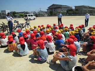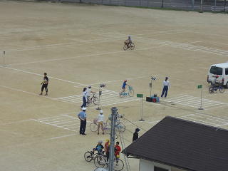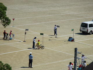 高鍋警察署の方々にきていただき、自転車の正しい乗り方について指導がありました。子ども達は、学んだことを、実際自転車に乗り、練習しました。