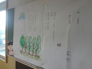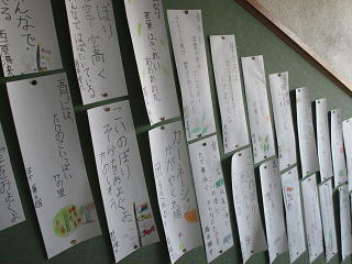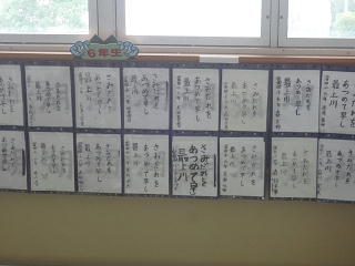 5年生が詠んだ短歌が掲げられいますよ!季節感あふれる作品です。
