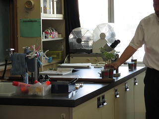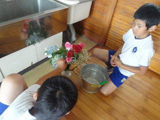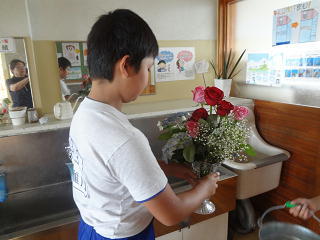 お花を持ってきました。大切そうに花束を抱え、花瓶に水を入れ・・・、いろいろ考えていけました。素敵な時間が流れていましたよ。