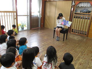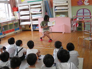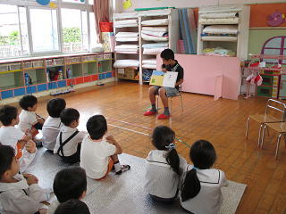 幼稚園・保育園で読み聞かせを行いました。前日の練習の成果を充分披露していましたよ。