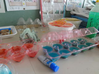道具を使って、ケーキやお団子、トンネルなどを作りました。