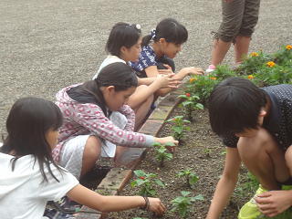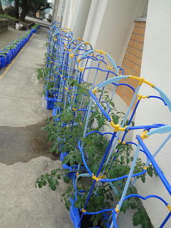 ナスにトマト・・・野菜がすくすく育っています。子供たちは朝の水やりが楽しみなようです。