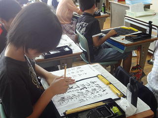 小筆で書きました。難しいですね・・・。みんな頑張りましたよ。