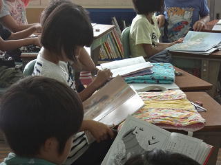 みんなで本を借りに行きました。教室に戻り、それぞれお気に入りの本を夢中で読んでいました。