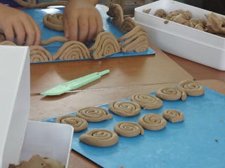 「たたいて・・伸ばして・・」楽しい作品が出来上がっていますよ。