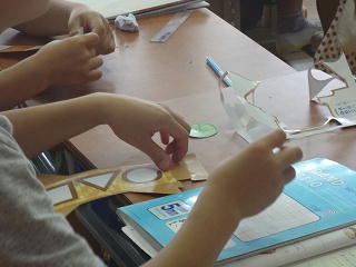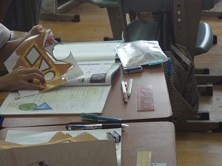 図形の学習!切り取ったり、貼ったり、重ねたりしながら学習を進めていました。
