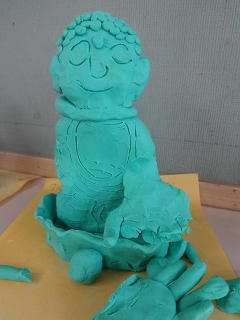 歴史の勉強の一環で、奈良の大仏を作りました。微笑みの表情の素敵な大仏ができました。