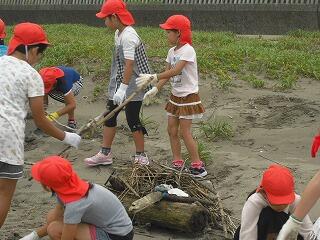 元気な赤ちゃんが海に帰ることができるように浜をきれいにしました!!