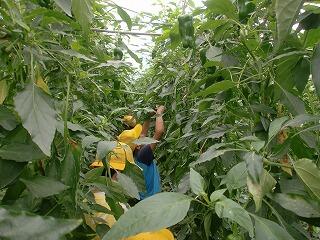 ハウスの温度管理やピーマンの取り方などお話を聞いた後、ハウスの中へ入りました。
