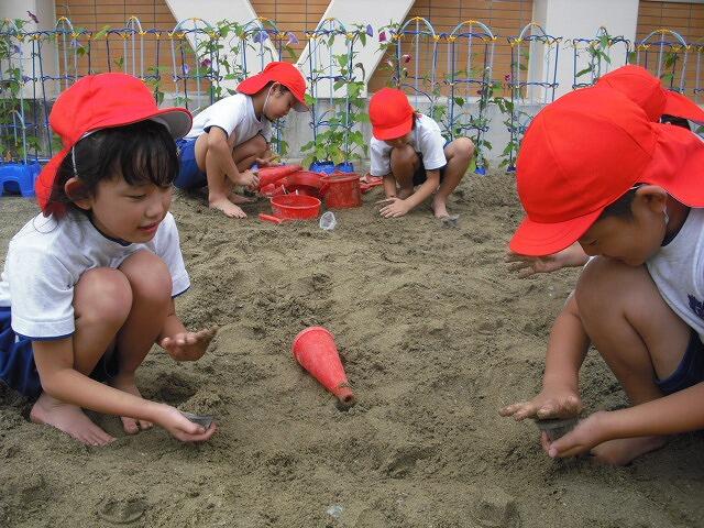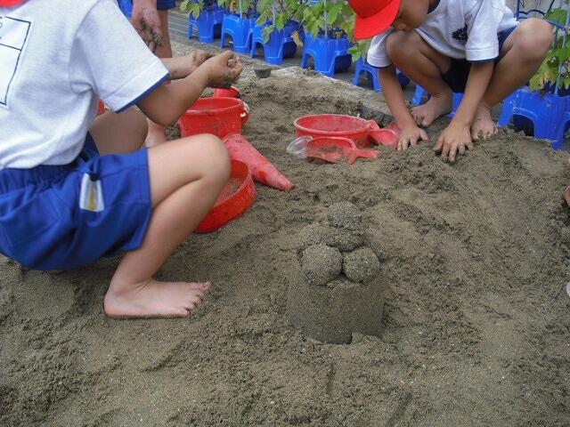 1年生は、梅雨の晴れ間を見て砂遊びを行いました。