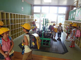 地区集会で大切なことを学び、みんなで集団下校を行いました。