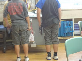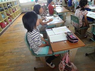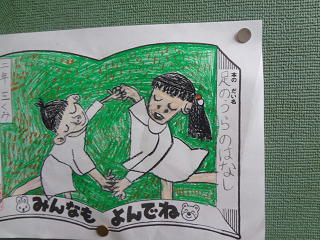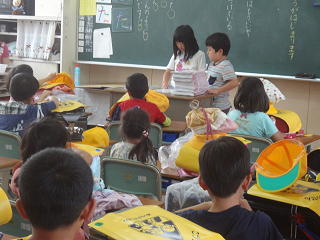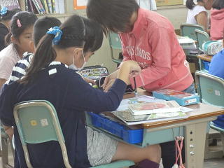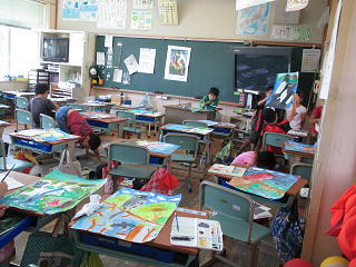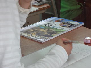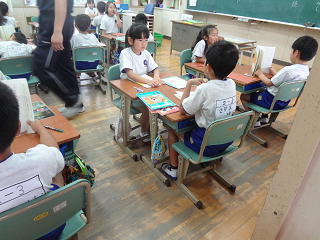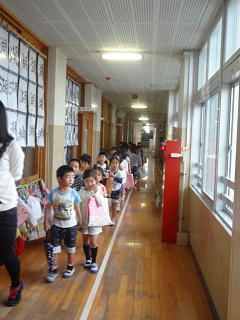 みんなで仲良く図書室に向かい、お気に入りの本を借りて、バックに入れ、笑顔で教室に戻っていきました。