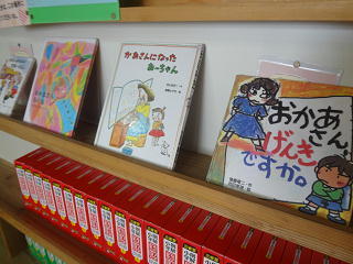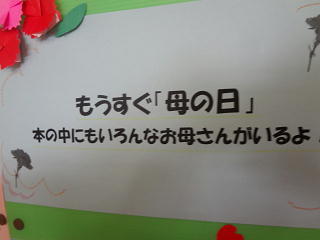 図書館のお薦めの本コーナーには、「母の日」にちなんで、本の中のあかあさんが紹介されていますよ。