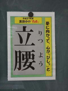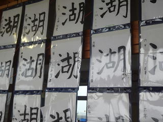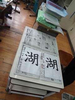 6年生になって初めて書いた習字!課題は「湖」力強い作品が掲げられましたよ。