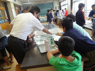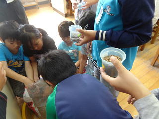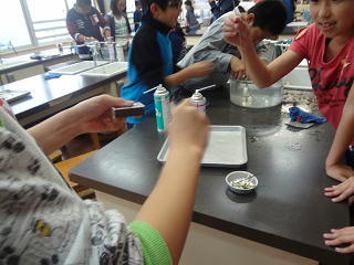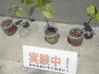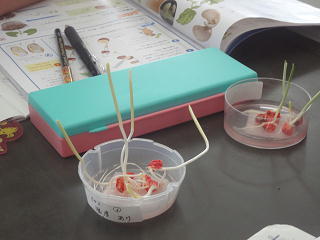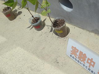 理科の実験中!肥料のあるなし・・。水の多い少ない・・・等、みんな実験結果を楽しみにしているようです。