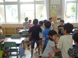 教室を広く使って、「ひらいた ひらいた」で遊びました。