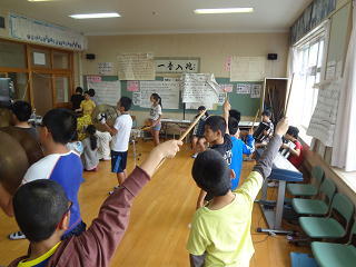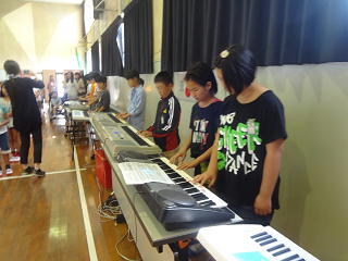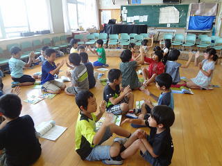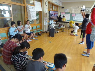 富田っ子合奏団の伴奏で校歌を元気よく歌ったり、みんなで踊ったり・・・楽しく活動しました。