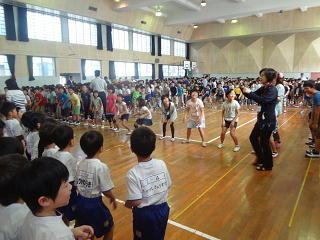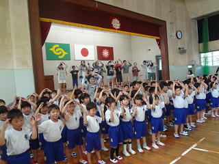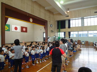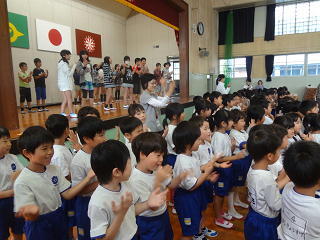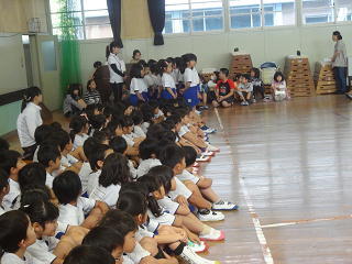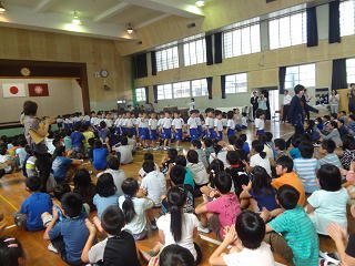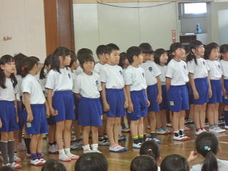 1年生は、歓迎集会のお礼をみんなで声をそろえて精一杯の声で伝えました。その後、上級生からの拍手の中、教室に向かいました。全校一つになった会でみんなの嬉しい表情が印象的でしたよ。