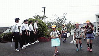 雨の日の登校について大切なお話がありました。この後、班長は地区集会でその内容を班員のみんなに伝えていましたよ。