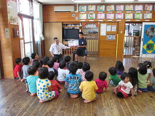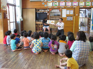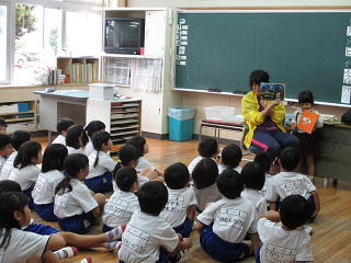 保育園を訪問し、6年生が読み聞かせを行いました。園児たちはくいいるようにお話を聞いていましたよ。
