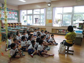 担任の先生の読み聞かせに身を乗り出して聞き入っていましたよ。