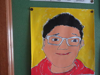 5年生の自画像が掲げられています。それぞれ自分の特徴をよくとらえた作品が出来上がっています。今日の参観日でたくさんの保護者の方々に見ていただけることと思います。