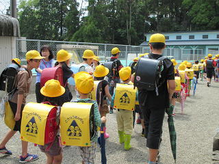 集団下校です。この時期は1年生は6年生となかよく帰ります。お兄さん、お姉さんといっしょで1年生は嬉しそうでした。