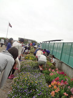 進んで学校のために力を尽くしています。学校の花壇は日々、雑草が抜かれ、手入れの行き届いた花壇になっています。