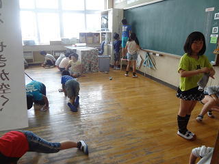 講堂でシャトルランを行っていました。みんな懸命に取り組んでいましたよ。