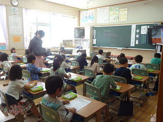 「はい!元気です。」の健康観察の声が響いていました。子供たちの体調は保健室の養護教諭の先生へ報告され、全児童の健康状態を把握しています。