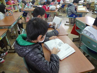 本の世界に夢中でした。昨日図書館から借りてきた本を読んでいる児童もたくさんいましたよ。