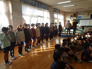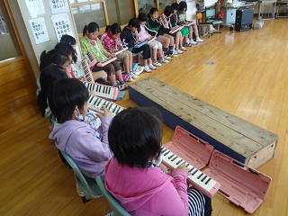 6年生のお手本の刺激を受けて、鍵盤ハーモニカを懸命に奏でていました。楽しそうでしたよ。