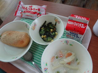 本校のリクエスト献立でした。オムレットケーキ・・・、揚げパン・・・等、子供たちの大好きなメニューが並びました。