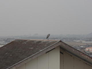 一瞬、朝日がさしました。資料館の上には昨年見かけた鳥が、今年もやってきていました。