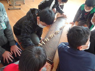 日本の伝統について学んでいます。能狂言・歌舞伎についで、本日は筝!その繊細な音にみんな興味しんしんの様子でした。