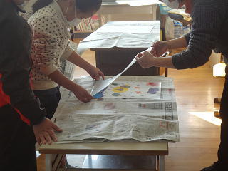色をつけて刷っていました。いろいろな色付けが自由にできて、楽しさ一杯の活動のようでした。