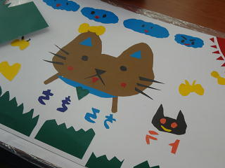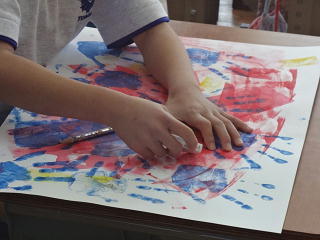 自分の手に色をつけて画用紙にペタペタ・・・・。楽しそうでした。