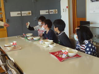 当番は手順もすっかり身につき、3年生もてきぱきと配膳!美味しくいただきました。
