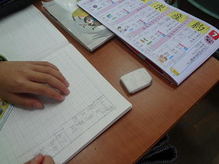 新出漢字を学んでいました。書き順や使い方等、一つずつ学びました。