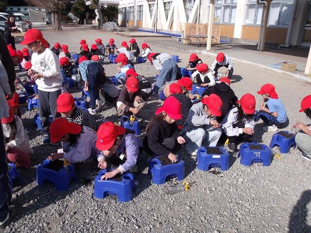 今日は、2年生が生活科の時間に「はつか大根」の種まきをしました。