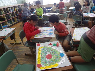 図工で作った手作りすごろくを使って楽しく遊びました。