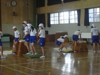 今日は、跳び箱等の評価が行われていました。お友達の頑張りに、拍手がたくさん起こっていましたよ。