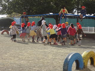 みんなで「はないちもんめ・・・。」歌いながら楽しく遊んでいました。