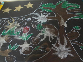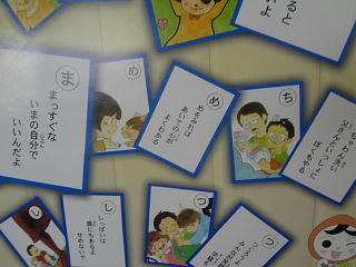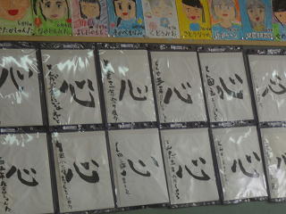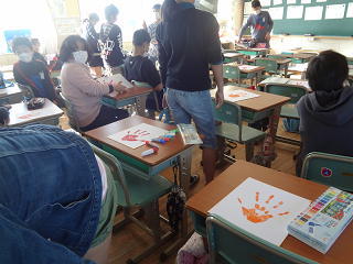 自分の手形を押し、自分で選んだ言葉を記しました。それぞれの子供の思いが溢れています。参観日にじっくりご覧ください。
