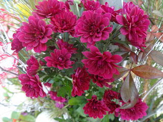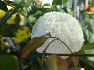 こんな、まあるいキクの花が飾られていました。清らかですね。