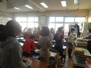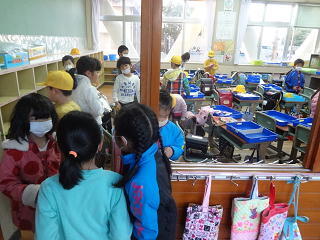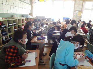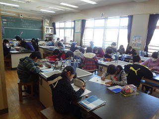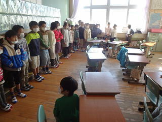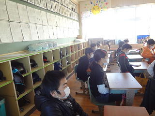 先生のお話にじっと耳を傾け、小学校最後の3学期の第一歩を踏み出していました。