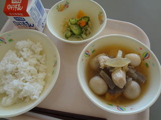 2学期最後の給食はメインがビーフシチュー!メリークリスマスデザートもついて子供たちは嬉しそうでした。