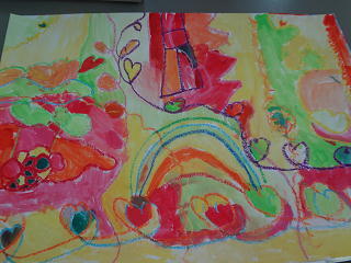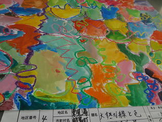 自分の「大好きな線と色」で作品をつくり、地区の展示会に出品しました。